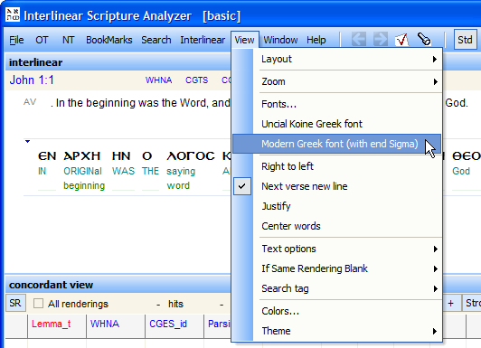 (ISA menu) - [View] - [Modern Greek font (with end sigma)].
